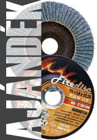 Az ajándék kombinált FIREDISC vágó-tisztítókorongunk különleges minőségű, extra biztonságos és hatékony megoldást nyújt olyan technológiai műveletek során, ahol a vágás után azonnal szükséges csiszolni is, valamint olyan megmunkálási körülmények esetén, ahol az extrém vékony (csak 1,9mm) szerszámmal lehet csak elférni.